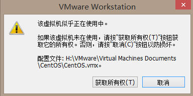 若虚拟机在不正常关机的时候会遇到如下图所示的问题:先点击“取消”按钮