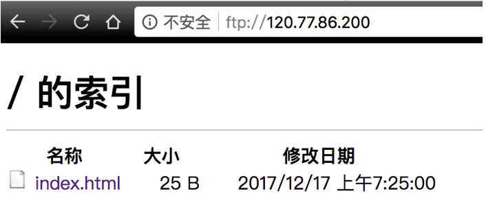 11.浏览器启动:ftp://120.77.86.200, 输入用户名ftpuser和密码xxx: