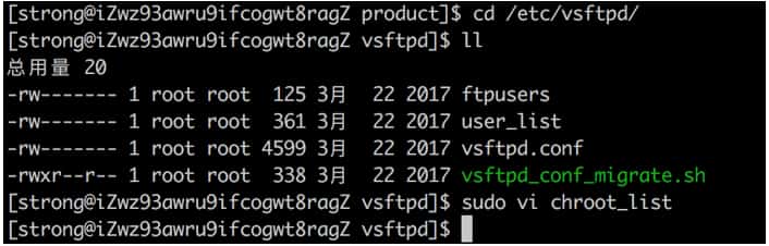 6.进入到/etc/vsftpd下,新建文件chroot_list,增加内容:ftpuser: