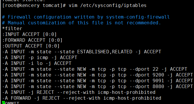 出现如图上所示的信息,则表示启动成功。这时候我们可以在windows下面使用http://ip:8080访问,如能够显示tomcat的主页,则表示不需要进行任何操作了,如不能显示,则需要在linux中开放防火墙的8080端口。