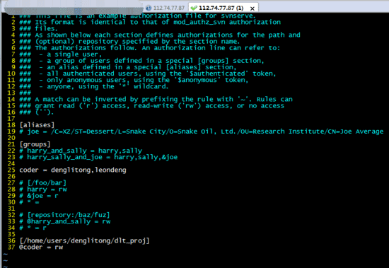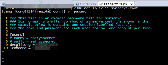 这里的username1,username2的用户需是linux里的存在的用户,且对应的svn密码已经在conf/passwd中指定。