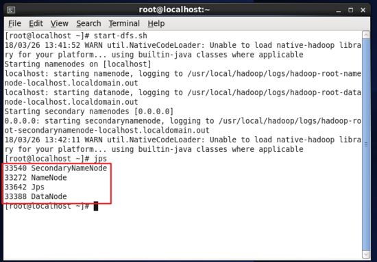 启动完成后,可以通过命令 jps 来判断是否成功启动,若出现下面 namenode、datanode、secondarynamenode、jps 四个进程,则 hadoop 启动成功。