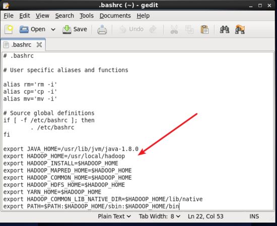 测试我们的 hadoop 安装没有问题,我们可以开始设置 hadoop 的环境变量,同样在 ~/.bashrc 文件中配置。