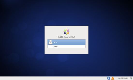 选择 other ,在 username 输入框中输入 root ,回车,再在 password 输入框中输入你创建用户时密码。root 用户是安装 centos 自动创建的超级用户,但密码和你安装系统时创建的普通用户密码是一样的。