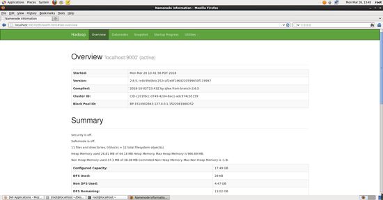 成功启动后,也可以访问 web 界面 http://localhost:50070 查看 namenode 和 datanode 信息,还可以在线查看 hdfs 中的文件。