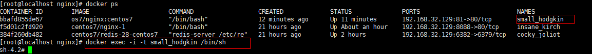 7、进入容器 docker exec -i -t small_hodgkin /bin/sh