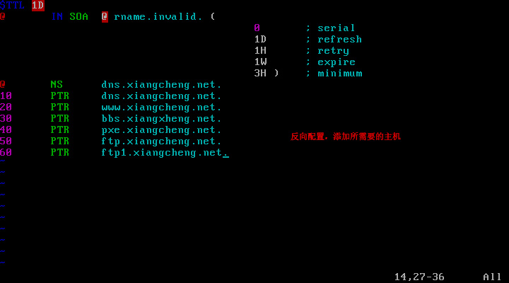 在服务器中安装配置bind服务,负责区域”xiangcheng.net” ip地址为10.100.100.x ,主机解析,五台主机分别为dns.xiangcheng.net、www.xiangcheng.net、bbs.xiangcheng.net、pxe.xiangcheng.net、ftp.xiangcheng.net、ftpl.xiangcheng.net,做好正反向dns服务解析,对访问yongli.com域的解析转发给10.100.10.100;
