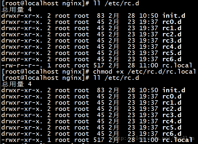 [root@localhost]# chmod a+x /etc/init.d/nginx