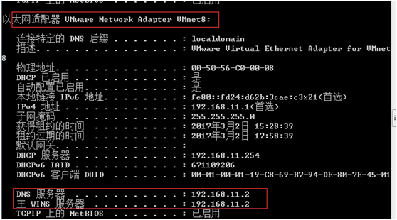 配置网络:查看VMware的默认路由(DNS)以及网关: