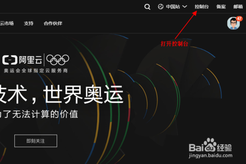 在右上角找到控制台的字样,进入到阿里云服务器的后台管理界面。