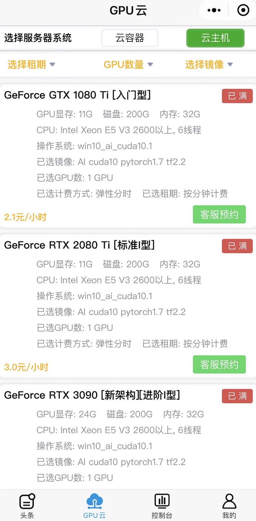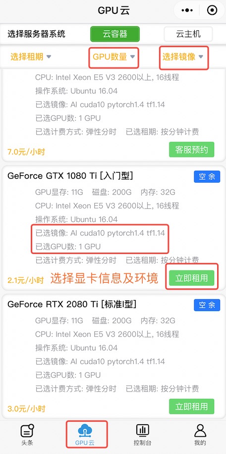 智星云(付费)(用过还不错,可以按分钟计时,价格适中,能够使用不同显卡设备,支持网页端和微信小程序,可以使用Pycharm专业版用SSH连接或者直接使用JupyterNotebook