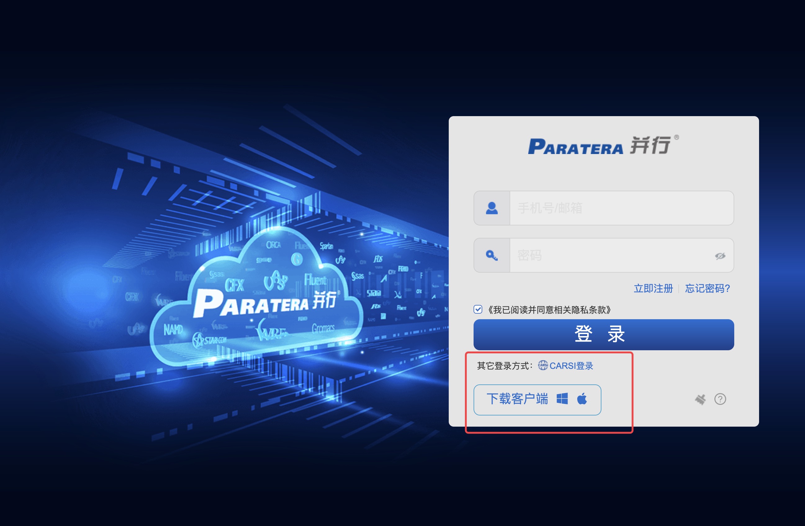 【并行®超算云服务】最新版下载链接:https://cloud.paratera.com您根据自己电脑系统,下载安装对应版本,通过云桌面即可登录超算。