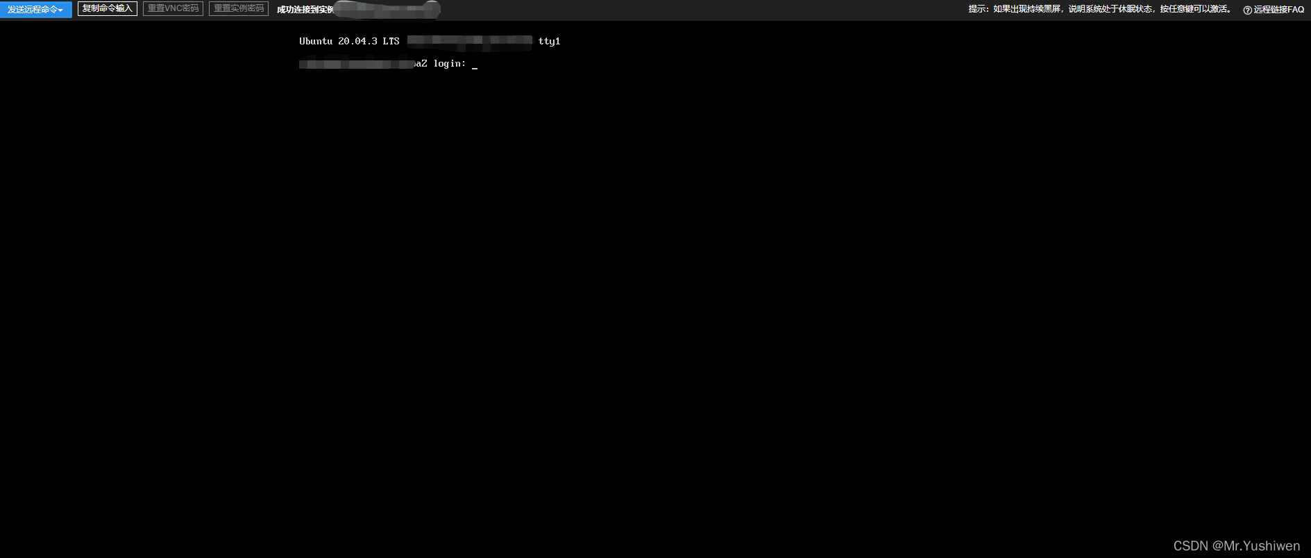 此时我们还需要输入我们云服务器实例(云主机)的用户名和密码,如下是VNC登录的流程图(图来自阿里云官方)。