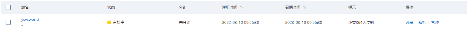 购买域名后还不能马上解释,需要等待域名实名认证审核通过。