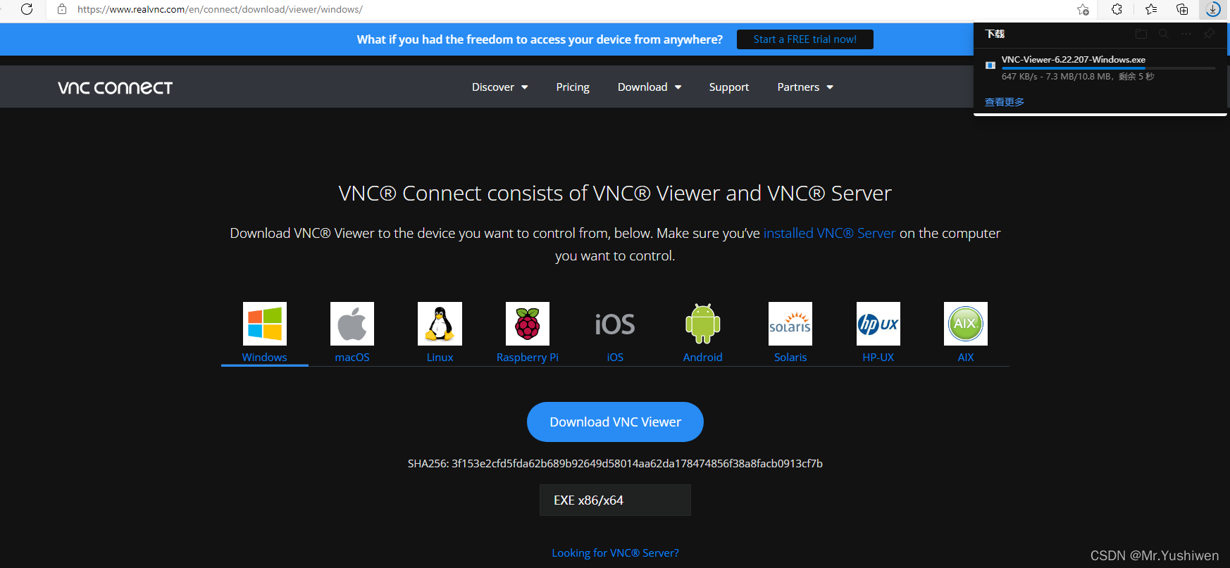 去VNC Viewer官网下载VNC Viewer远程连接客户端,网址
