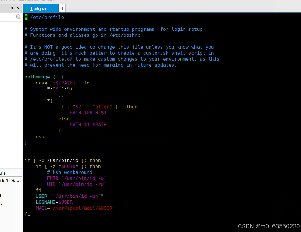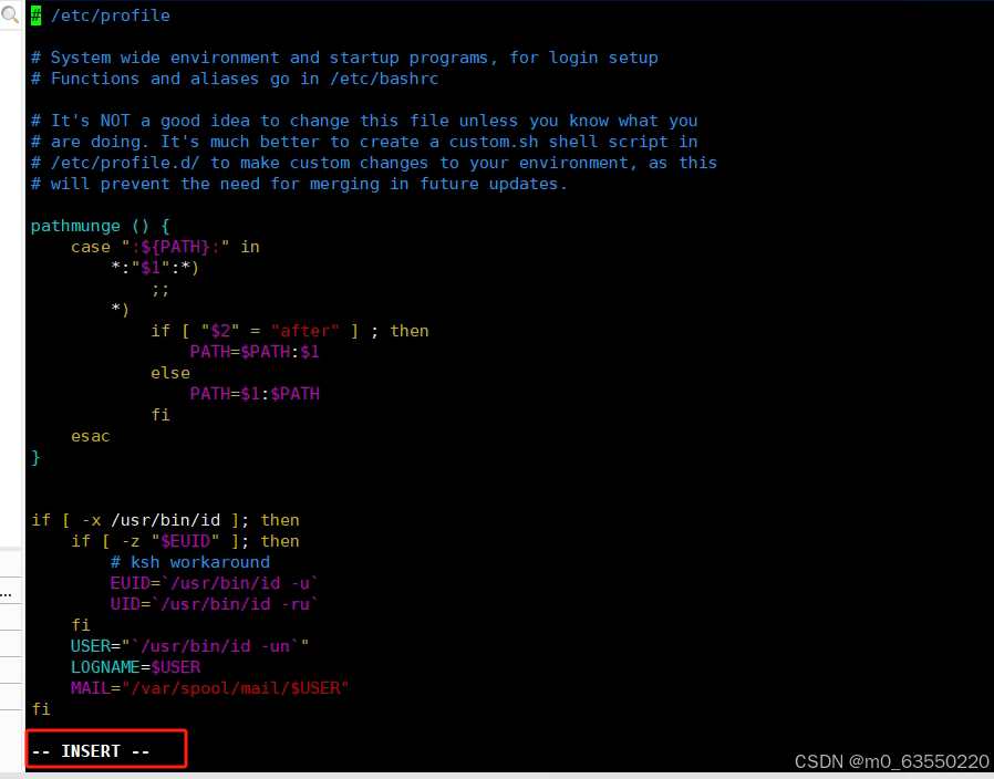 解压完成后使用vim /etc/profile命令编辑环境变量