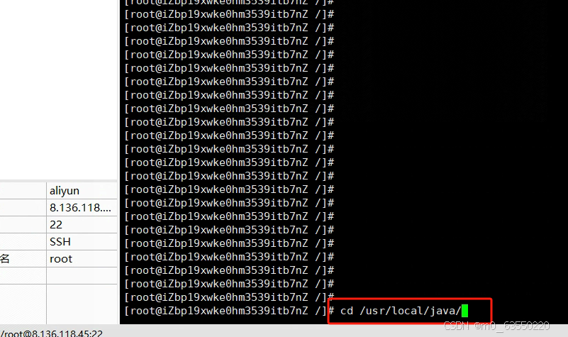 在xshell窗口里使用cd /usr/local/java/进入到java目录