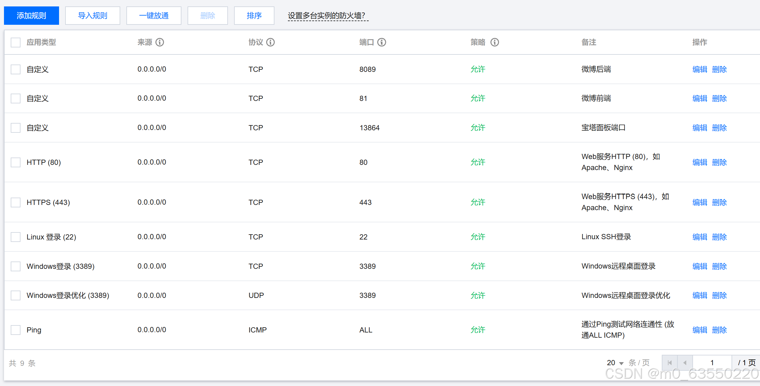 在登录宝塔面板之前,在平台上随便开启一个端口,作为宝塔日后访问的端口,因为宝塔默认端口是8888,不安全,所以改一个自己的端口