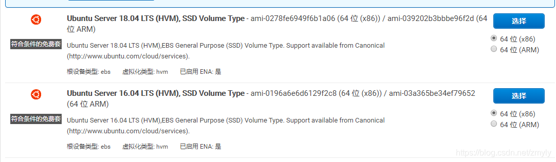 6、在实例中选择免费实例,由于我是Apt系的,所以我选择Ubuntu;