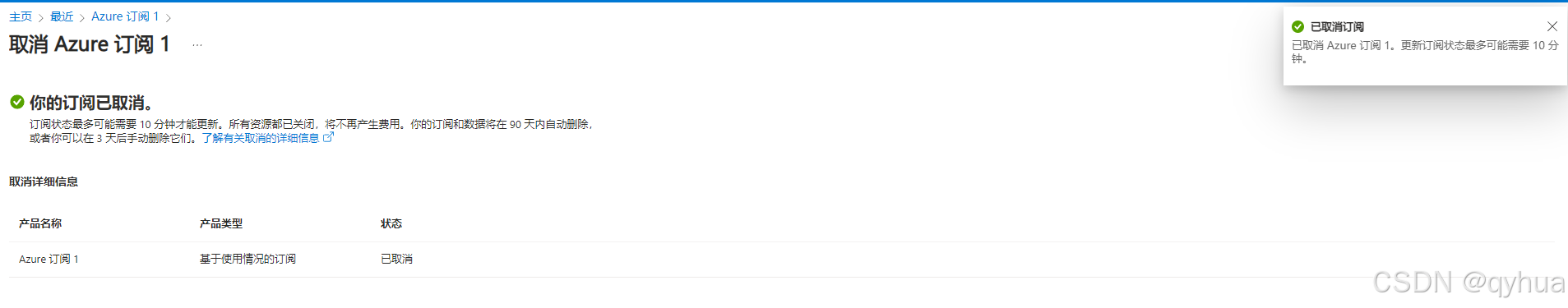 Azure到期后不会有有提醒,所以要记得到期前一天备份好数据,关机并取消订阅。